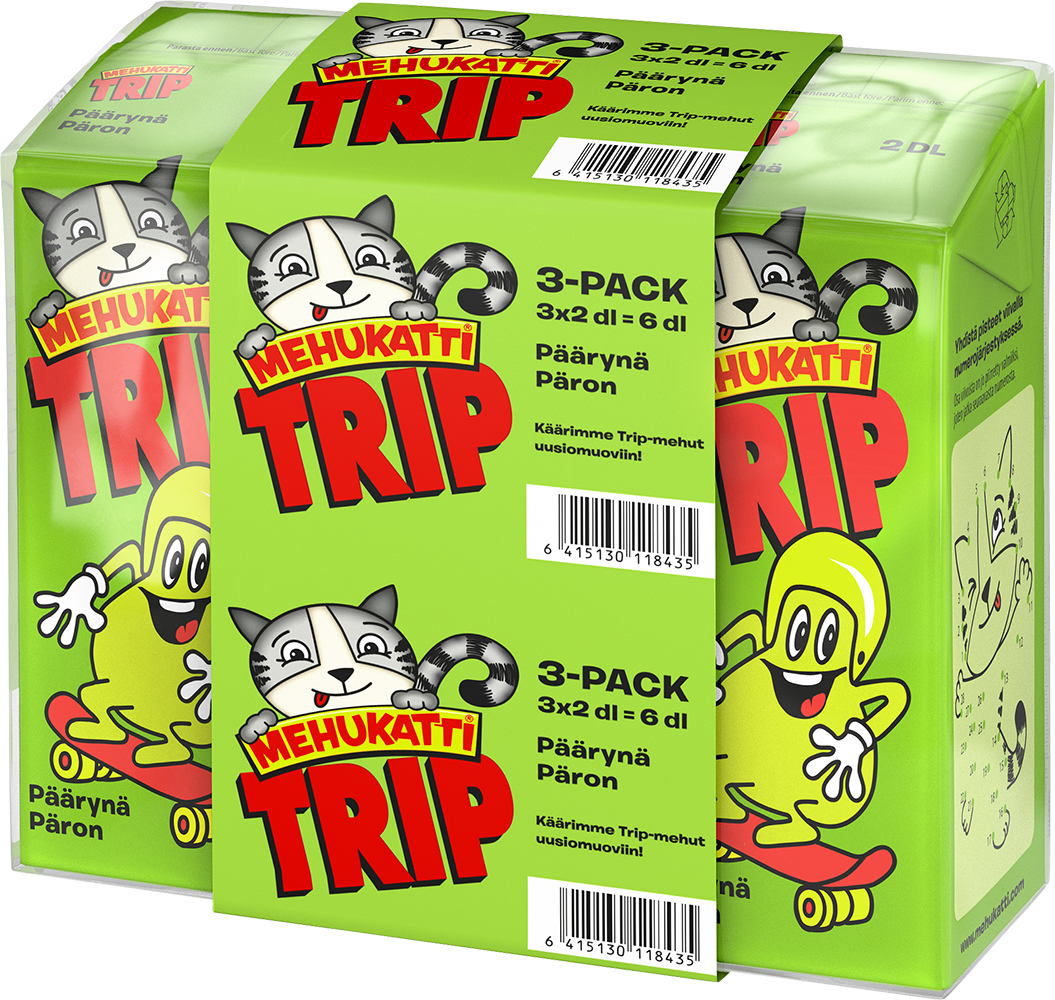 Kätevät Mehukatti Trip 3-packit on helppo kuljettaa kotiin, napata mukaan retkelle tai mökille sekä tarjoilla janoisille vieraille lastenjuhlissa.