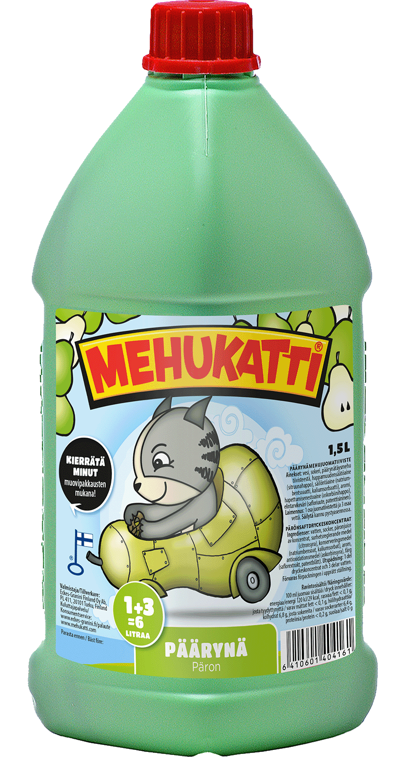 Mehukatti on koko perheen herkullinen janonsammuttaja ja vauhdikkaiden synttärien ja lastenjuhlienlempparijuoma. Pakkauksesta saat laimentamalla 6 litraa valmista herkullista mehujuomaa. Mehukatti maistuu aina yhtä hyvältä! Valmistettu Suomessa.